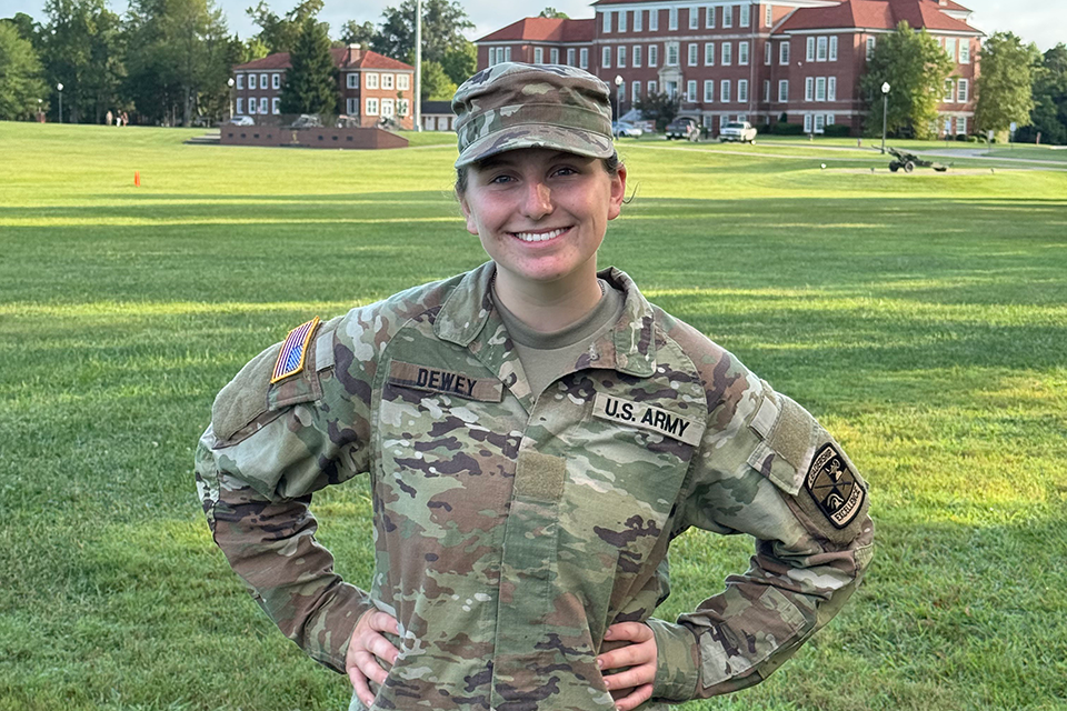 Dewey says she chose the ROTC program to enhance her nursing career with opportunities for travel and training. “I really like the constant ability to advance and learn, take classes through the military, and travel for it,” she says. “I wanted to take part in tactical training. I wanted to learn how to shoot a gun. I wanted to learn how to survive outside and do land navigation.”